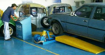 The car is driven up the Sachs Absorber Tester. It test left and right independently. 1st front then finally rear.